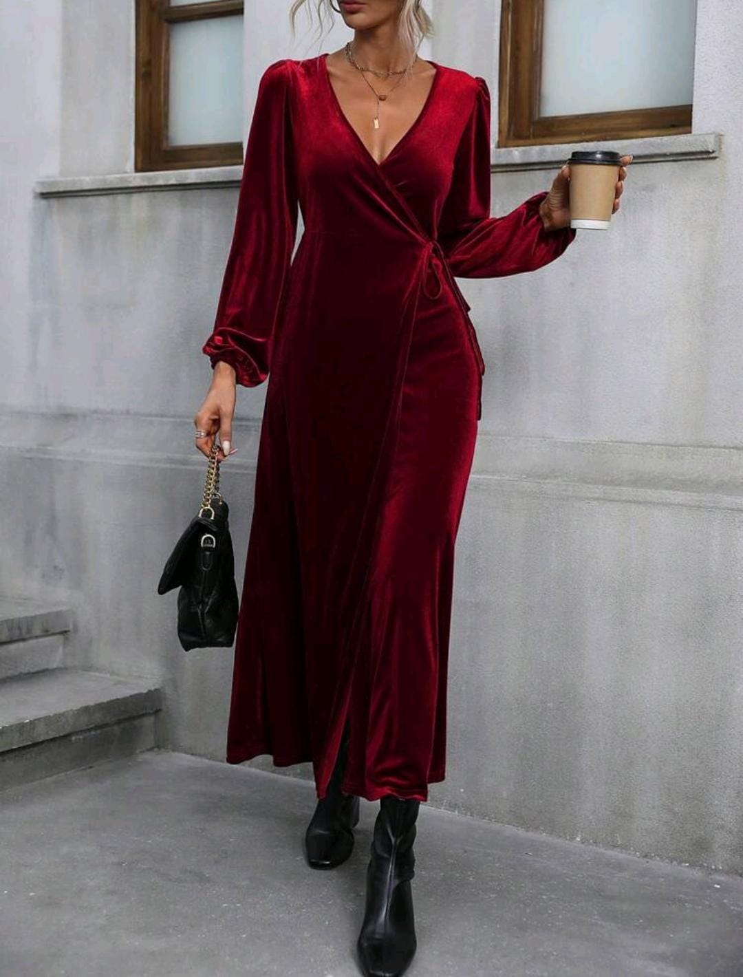 Lantern Sleeve Knot Side Wrap Dress quantity