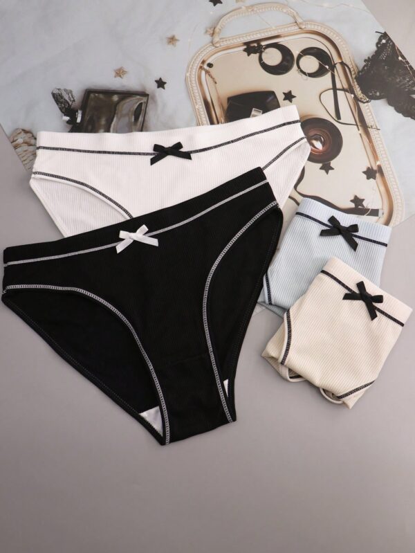 4 Pcs Silk Cute Bow Comfortable Loose Triangle Panties | Voile et lumiere | Online Store