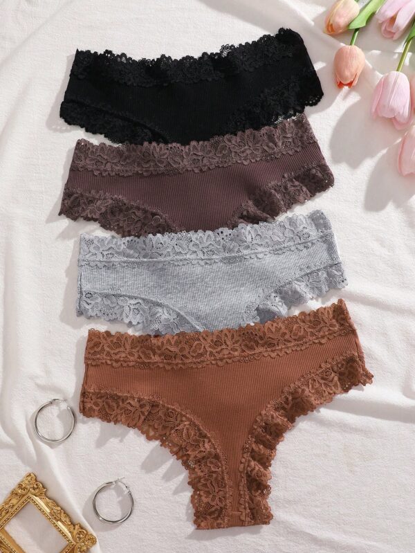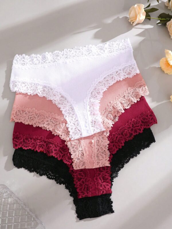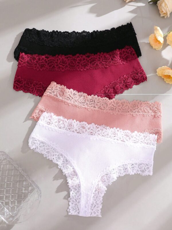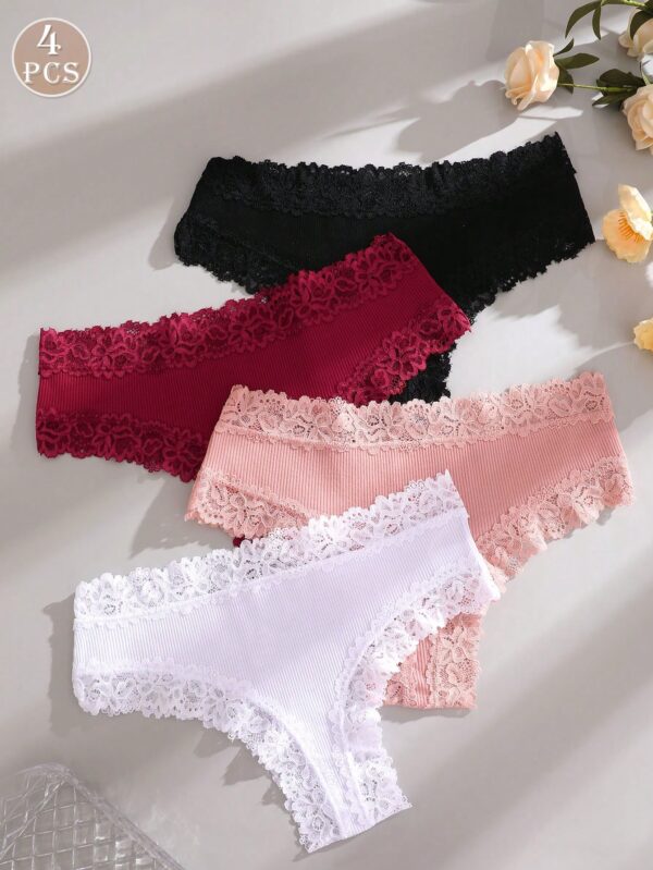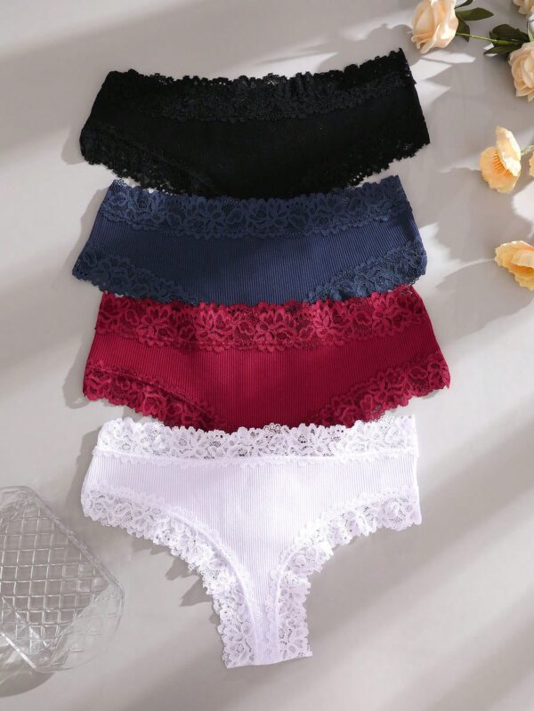 4pcs Lace Trim Simple Comfortable Striped Briefs Panties