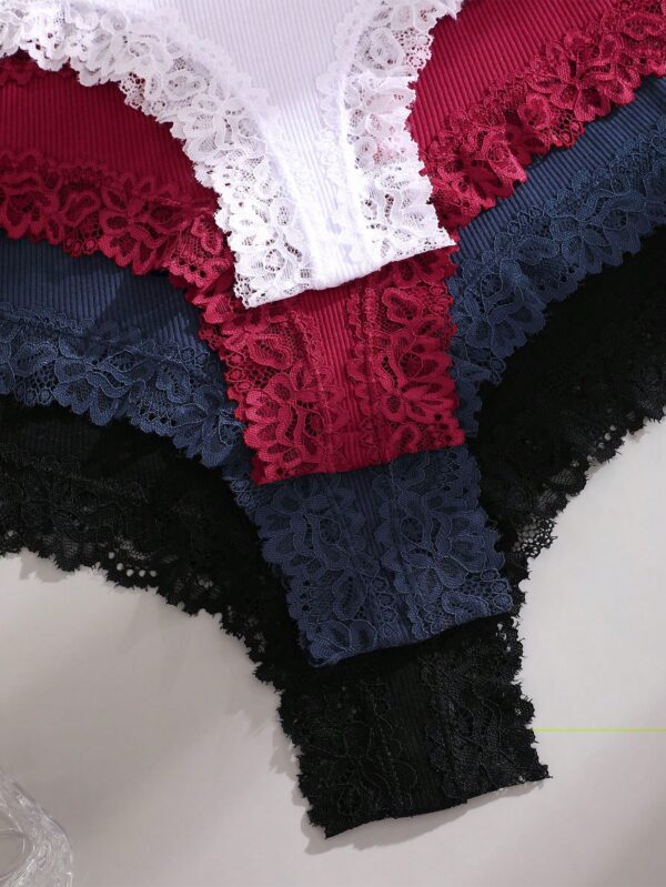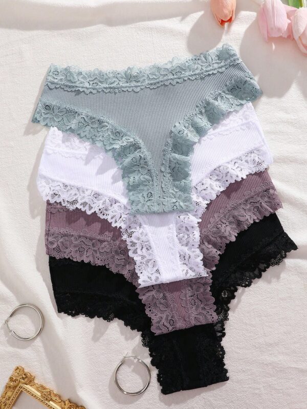4pcs Lace Trim Simple Comfortable Striped Briefs Panties | Voile et lumiere | Online Store