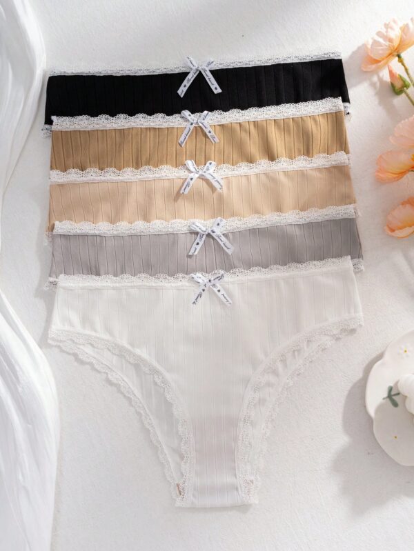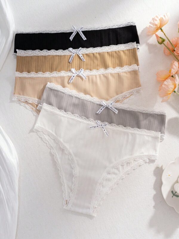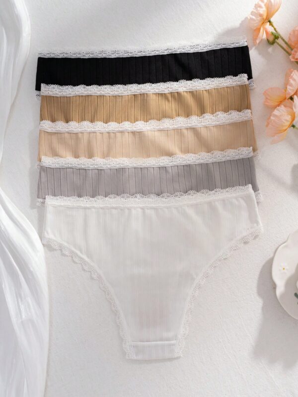 5pcs Lace Trim Striped Briefs