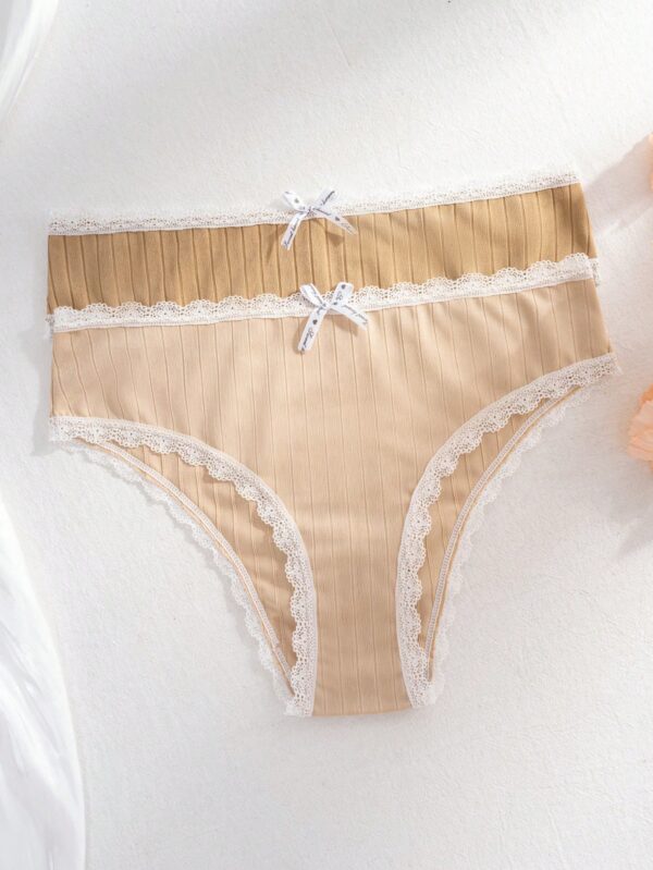 5pcs Lace Trim Striped Briefs | Voile et lumiere | Online Store