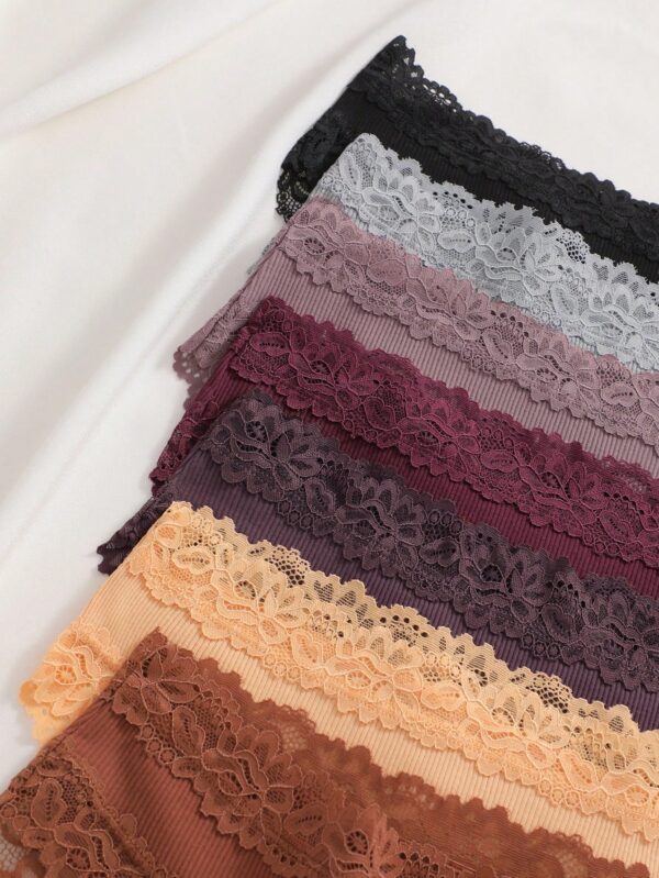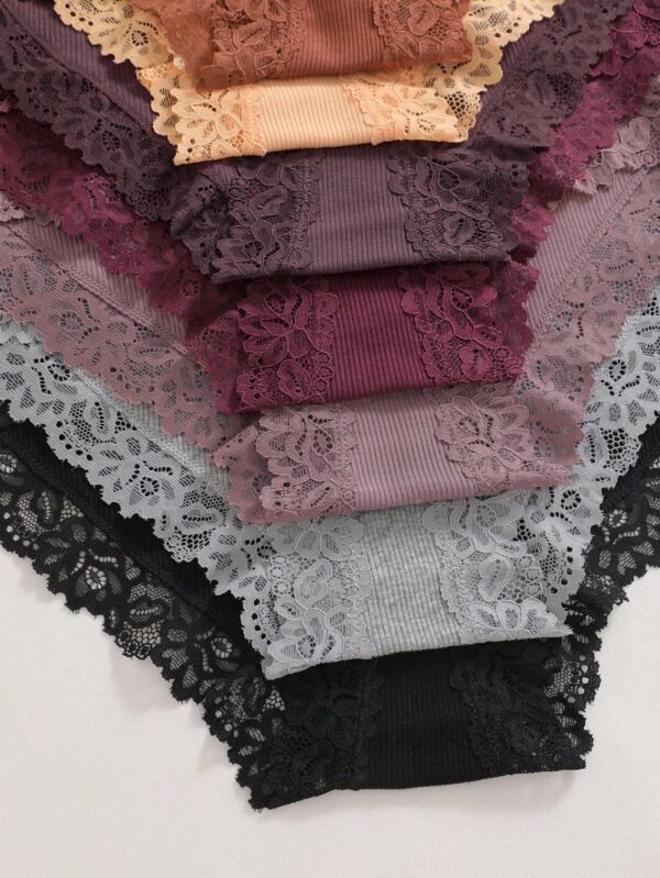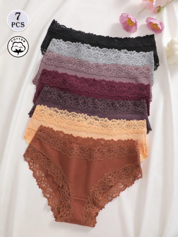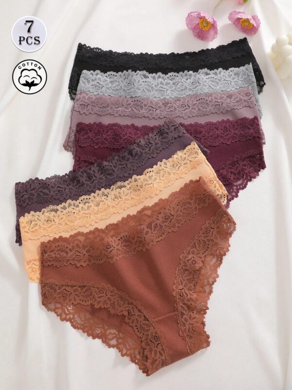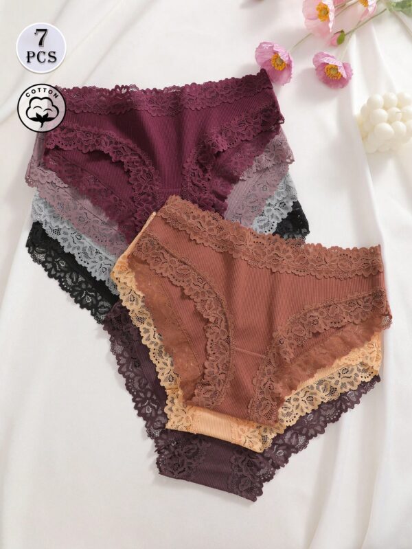 7pcs/Set Solid Color Cotton Lace Patchwork Ribbed Panties | Voile et lumiere | Online Store