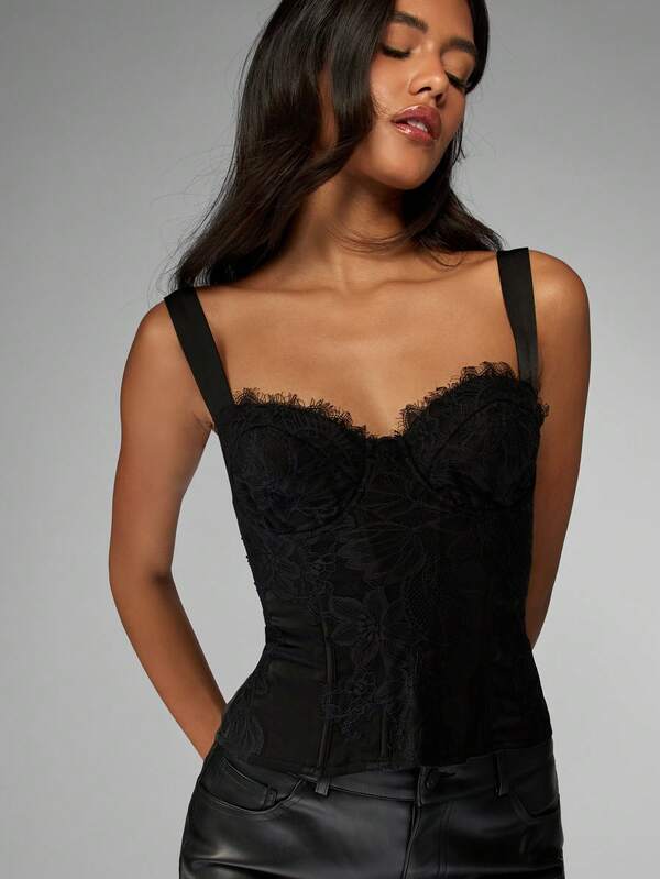 Details: Contrast Lace, Lace-Up, Cup Detail