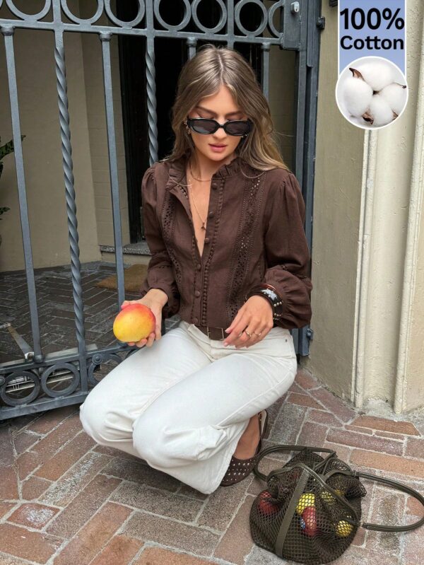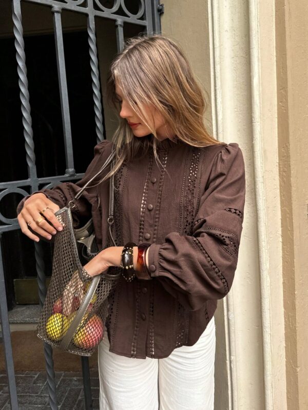 Cotton Brown Shirt With Embroidery | Voile et lumiere | Online Store
