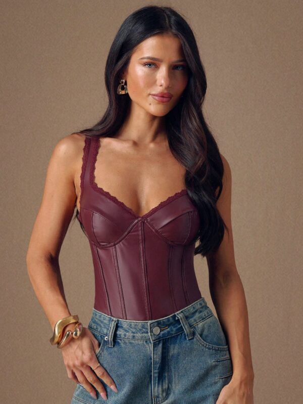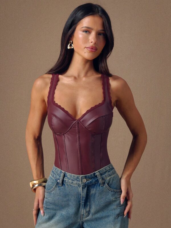 Faux Leather Camisole Bodysuit | Voile et lumiere | Online Store