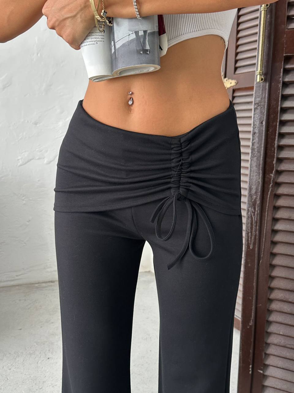 Flared Waist Tie Sweatpants