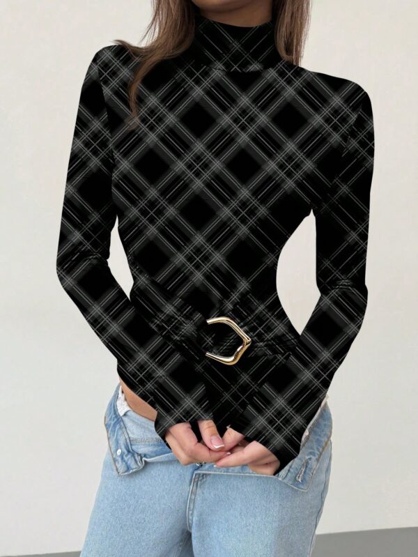 High Neck Fitted Metal Buckle Bodysuit | Voile et lumiere | Online Store