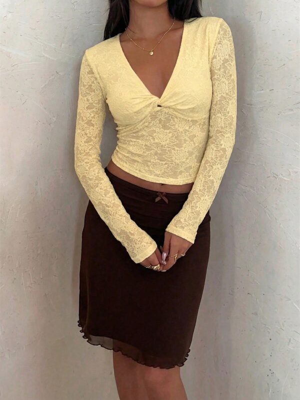 Sleeve Length: Long SleeveLength: RegularFit Type: Slim FitSheer: Semi-SheerFabric Elasticity: Medium StretchMaterial: Knitted FabricComposition: 65% Polyester, 35% Polyamide