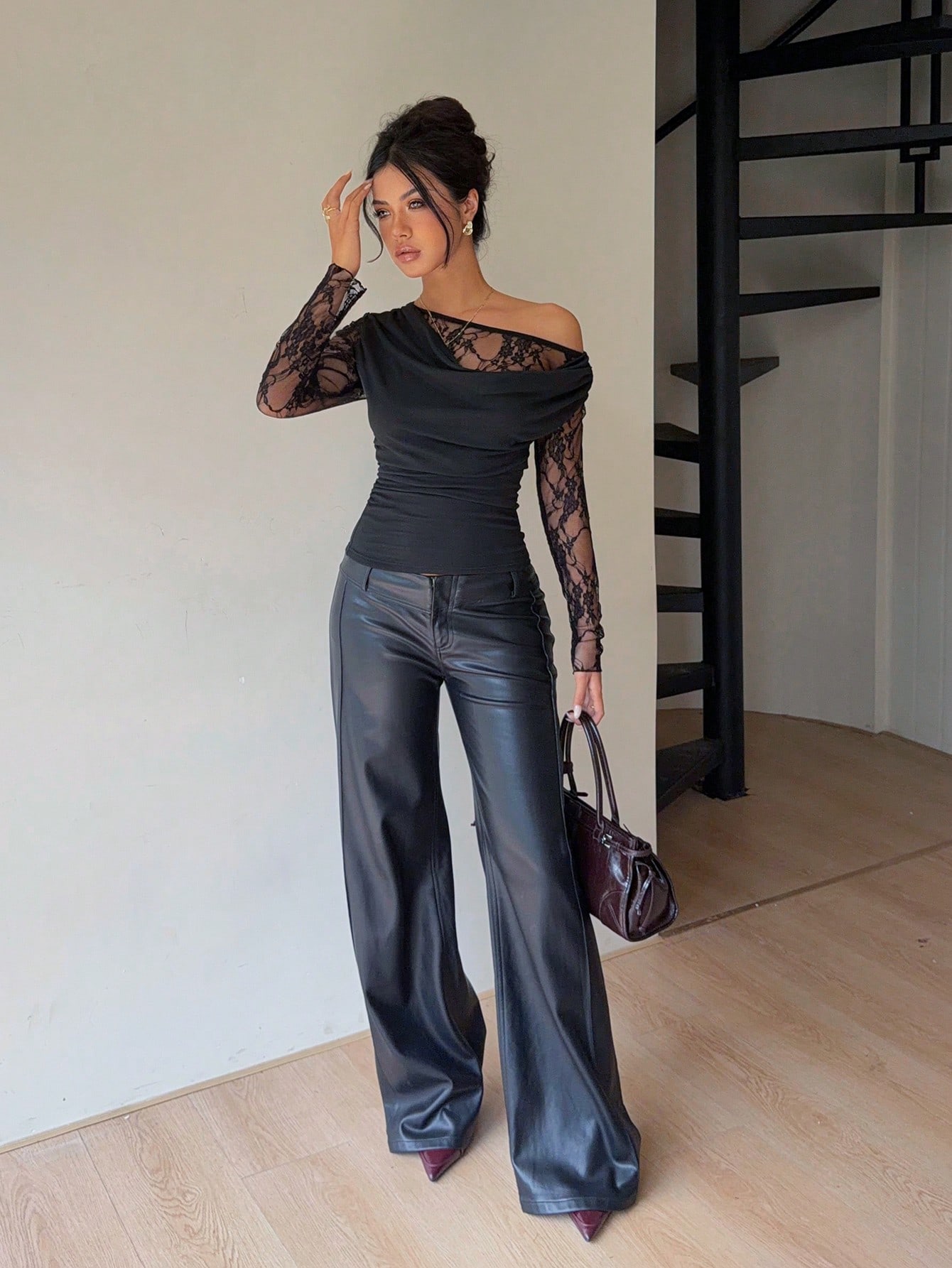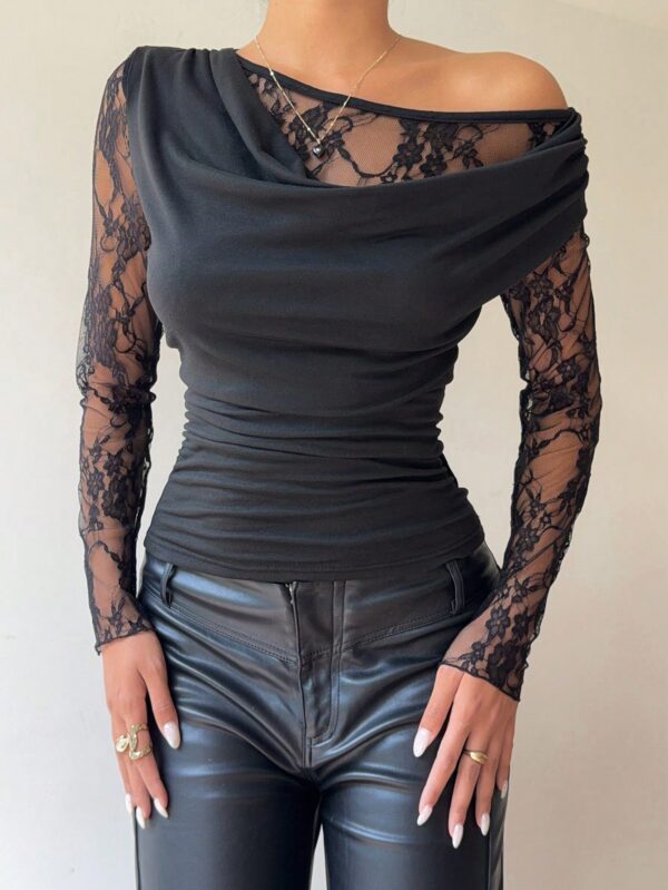 Fabric Elasticity: Slight Stretch Material: Lace Composition: 92% Polyester, 8% Elastane Care Instructions: Machine wash, do not dry clean