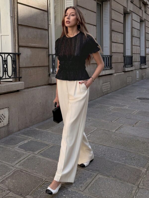 Fit Type: Regular FitFabric Elasticity: Slight StretchMaterial: Knitted FabricComposition: 100% PolyesterCare Instructions: Machine wash, do not dry cleanSheer: Semi-Sheer