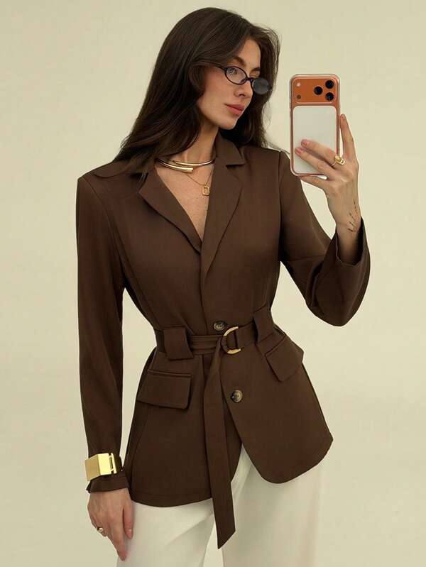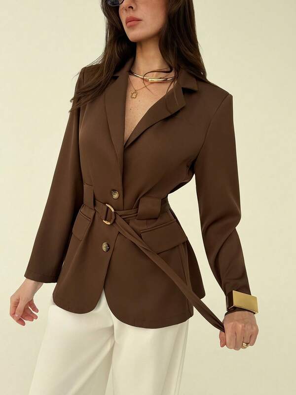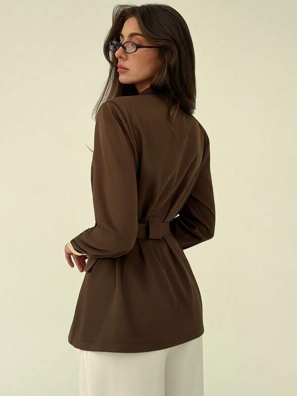 Elegant Deep V-Neck Metal Decor Blazer Jacket