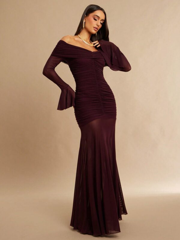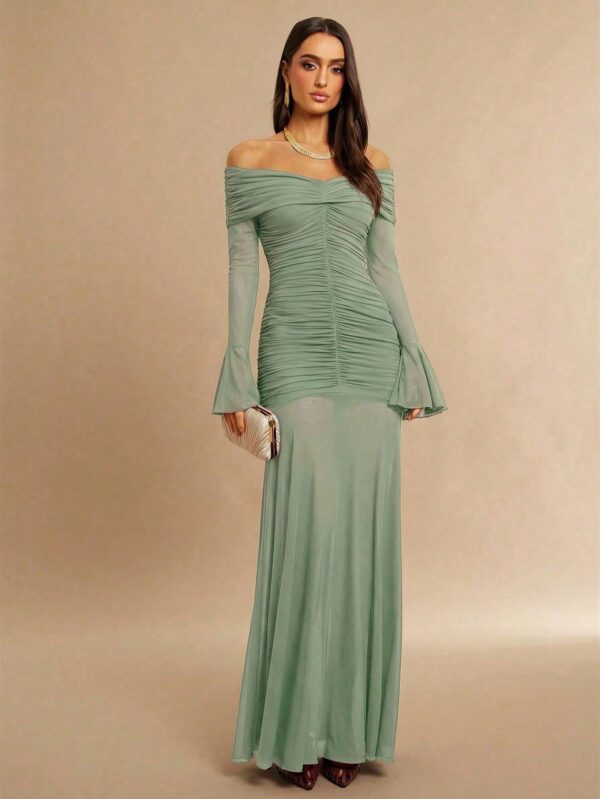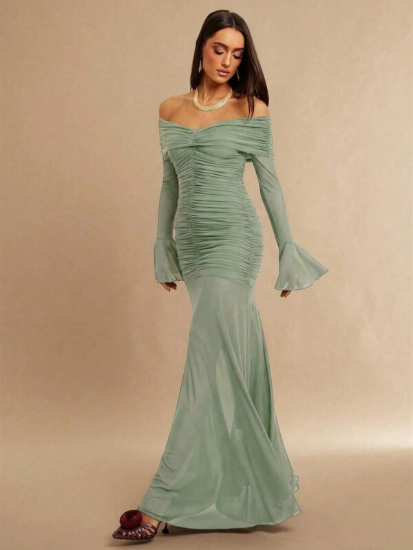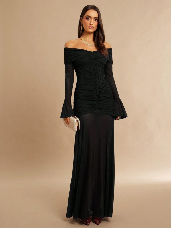 Off Shoulder Fitted Elegant Long Sleeve Dress