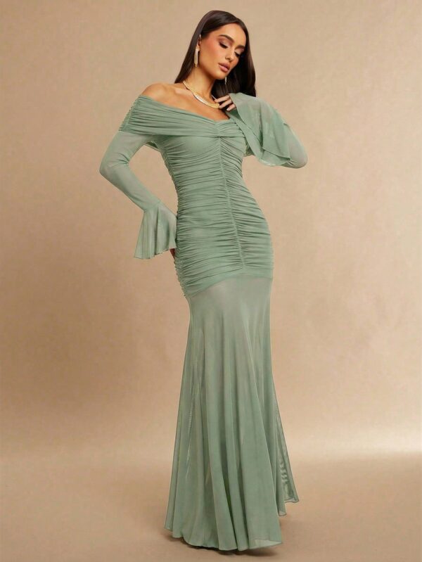 Off Shoulder Fitted Elegant Long Sleeve Dress | Voile et lumiere | Online Store