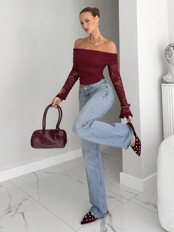 Off Shoulder Long Sleeve Top | Voile et lumiere | Online Store