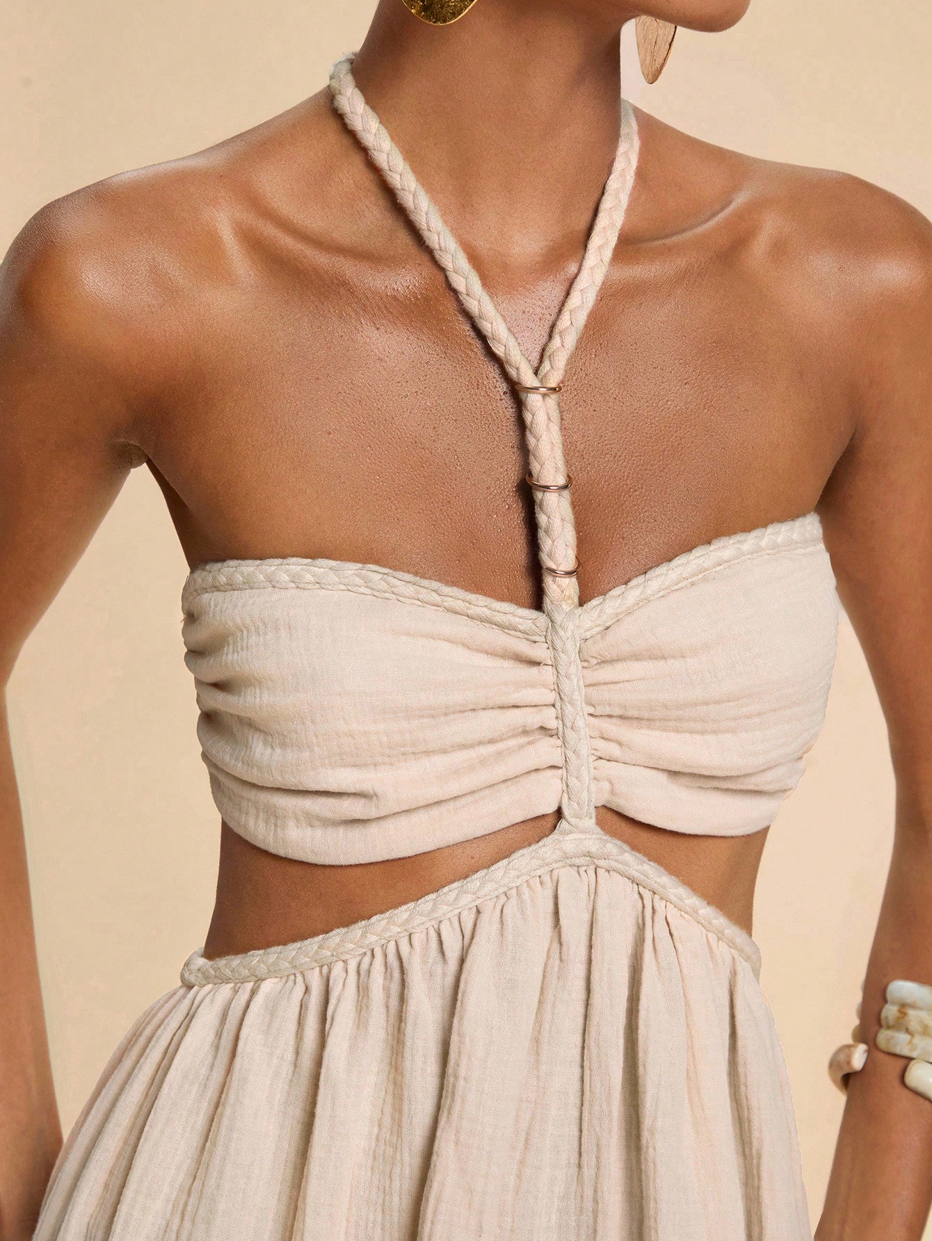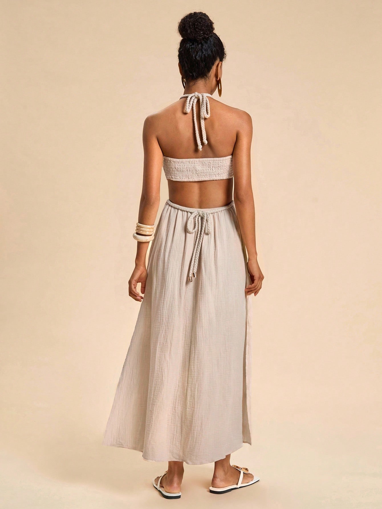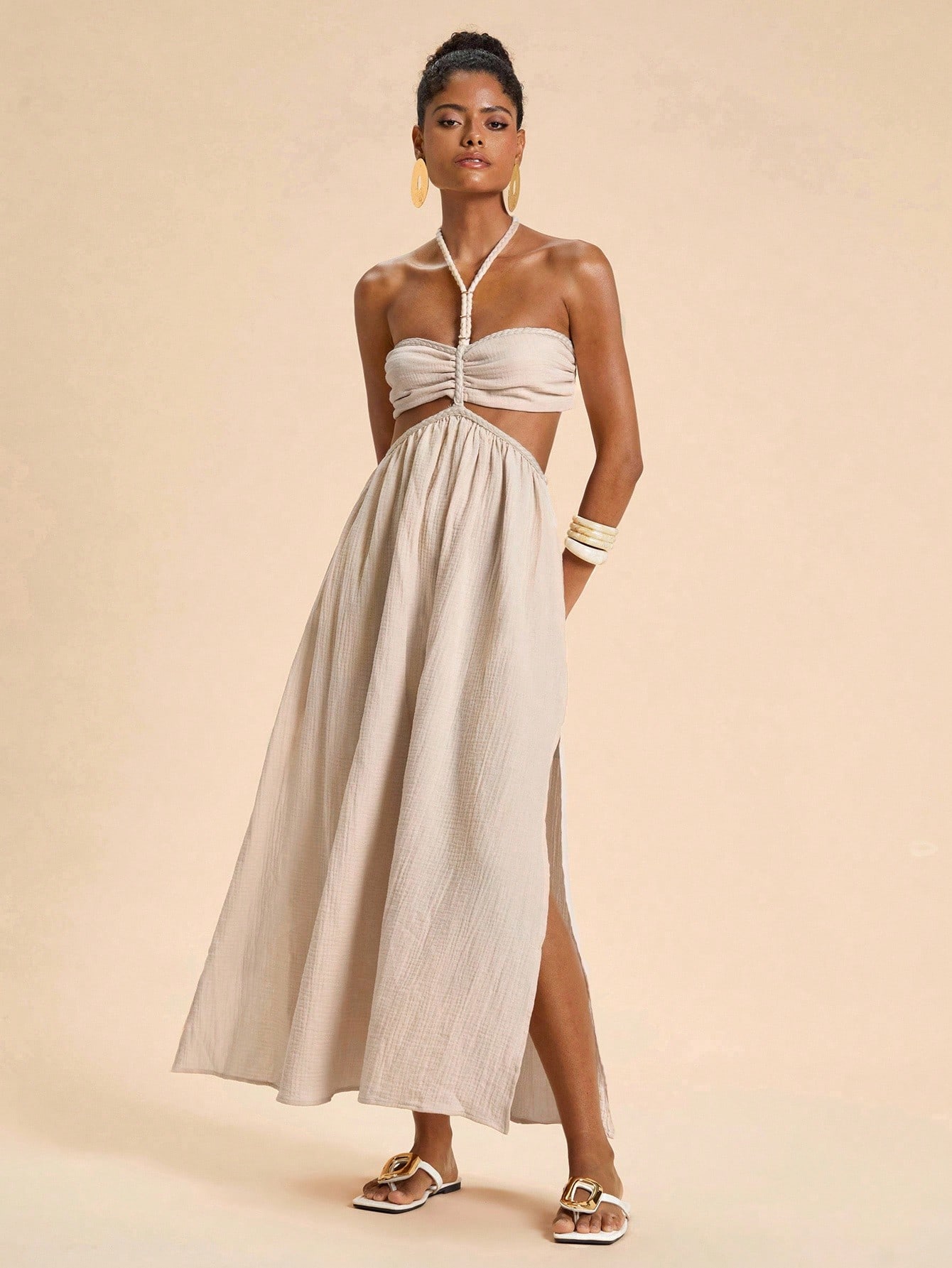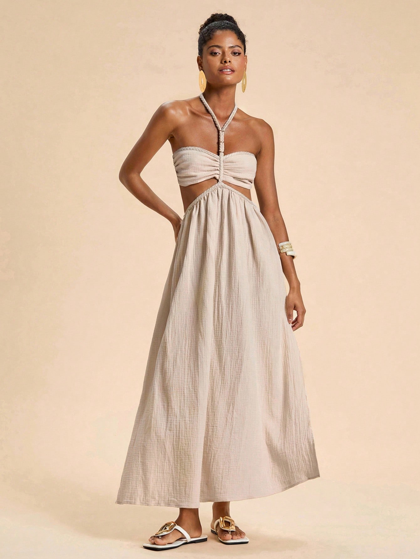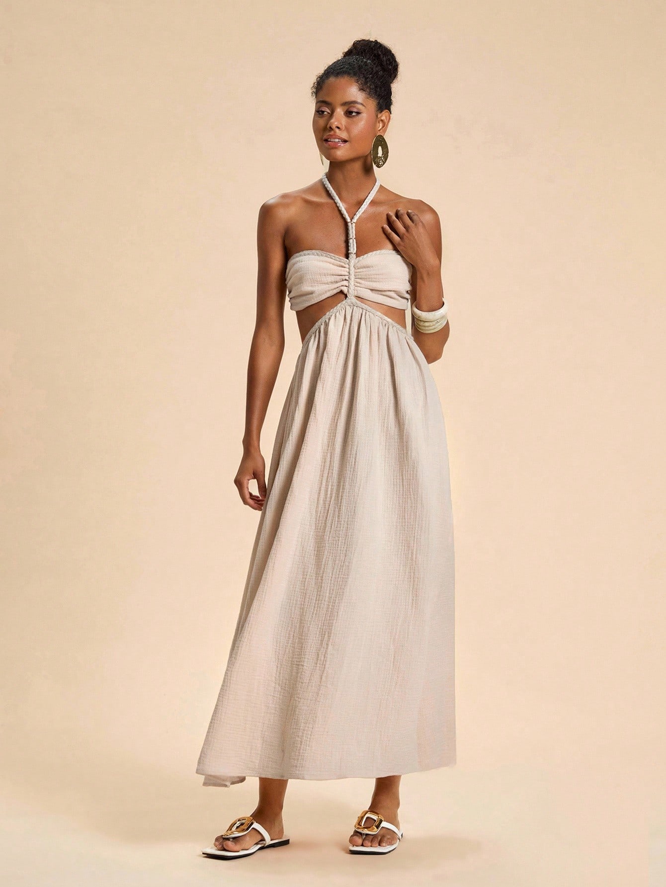 Body: Unlined Color: Apricot Sleeve Length: Sleeveless Fit Type: Slim Fit Length: Maxi Material: Woven Fabric Composition: 100% Cotton Sheer: No Fabric Elasticity: Non-Stretch