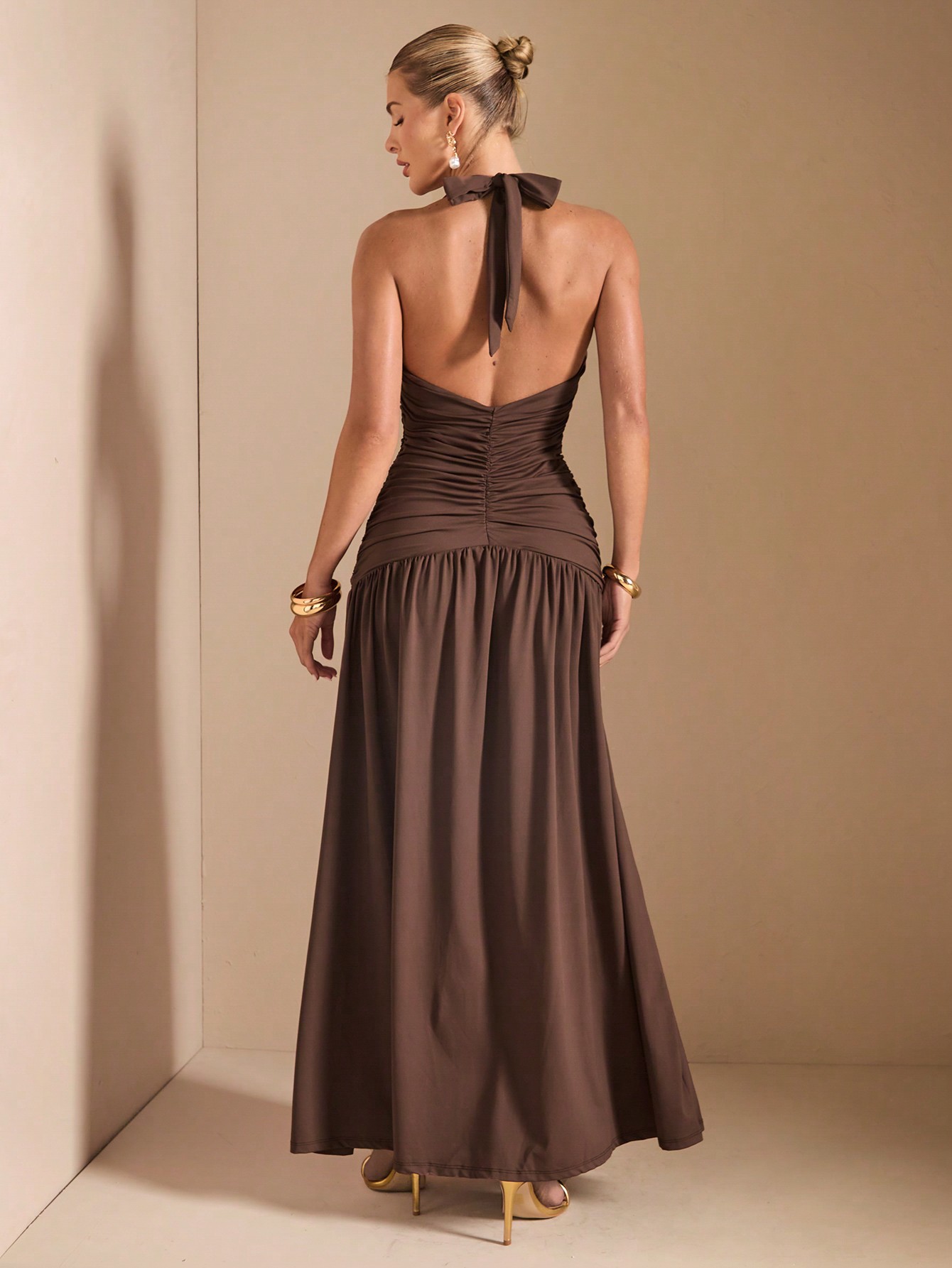 Plunging V-Neck Backless High Slit Long Dress | Voile et lumiere | Online Store