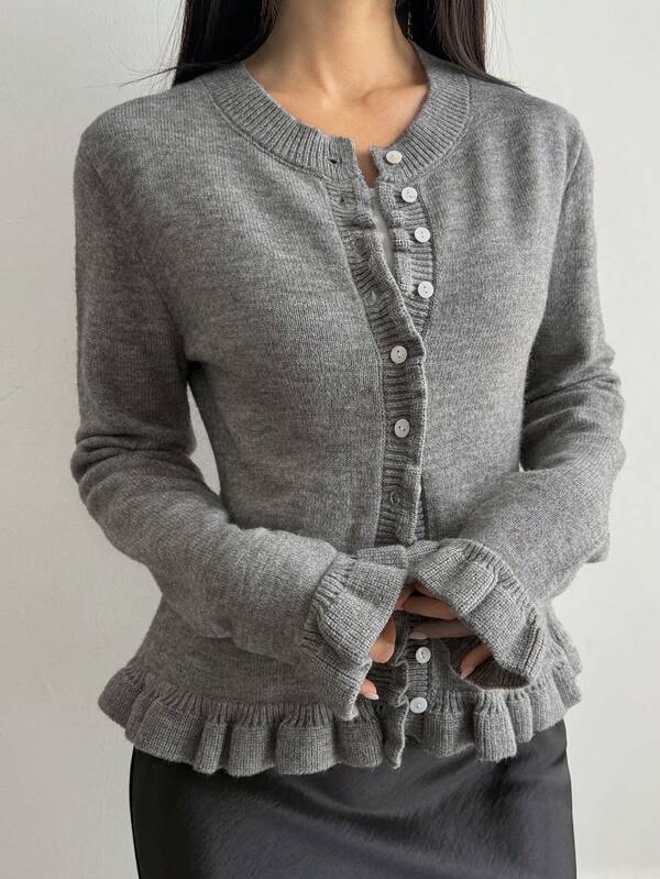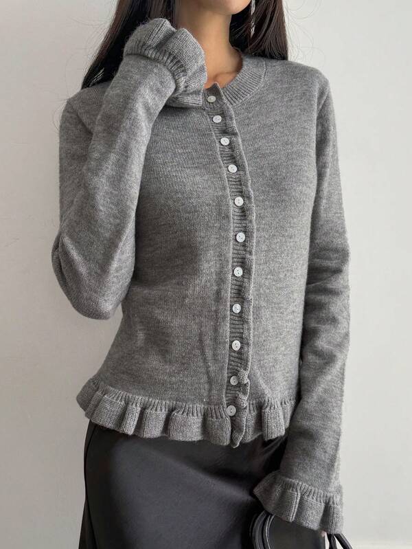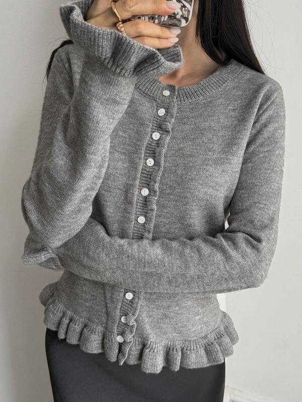 Ruffle Trim Cardigan | Voile et lumiere | Online Store