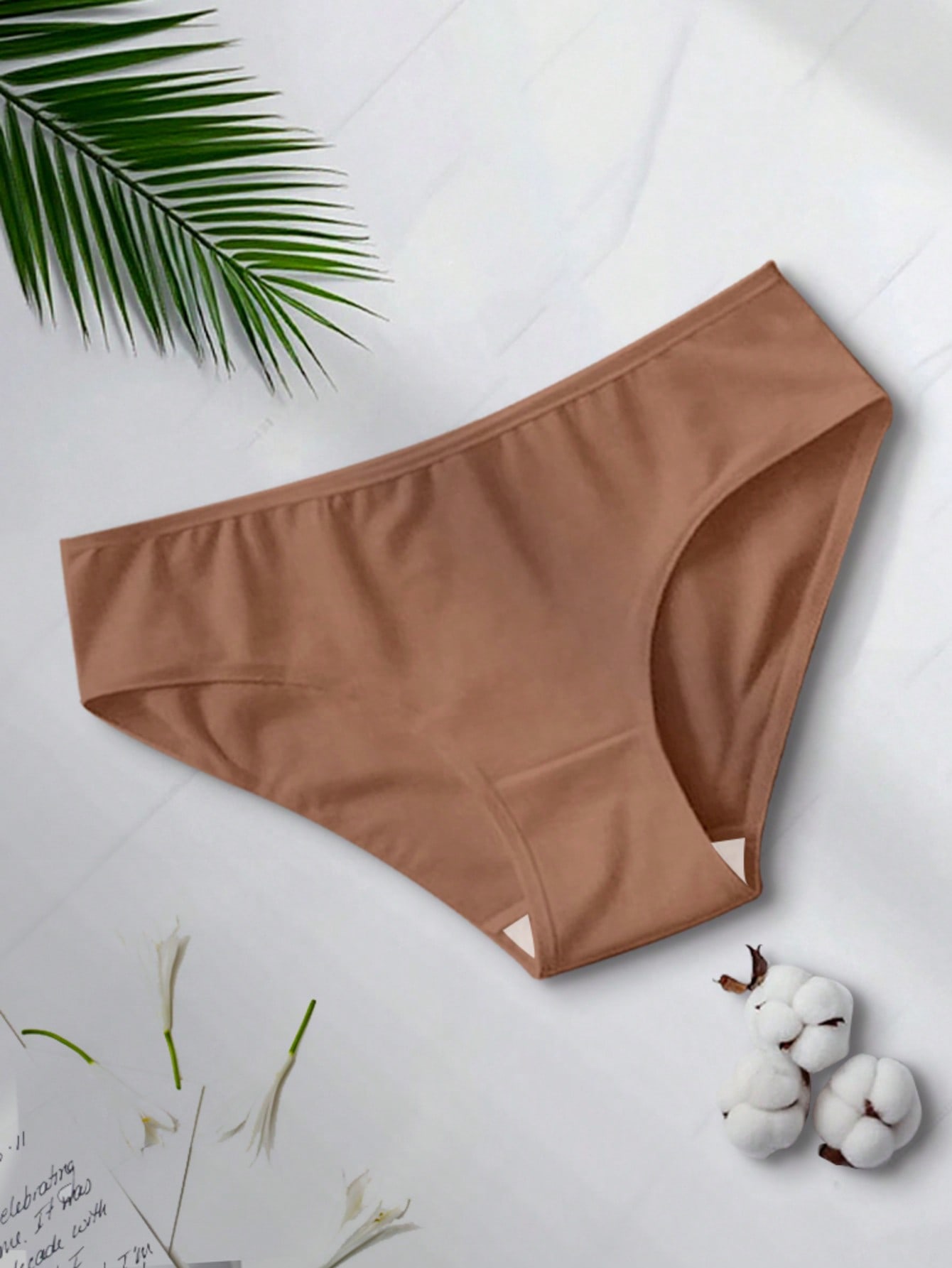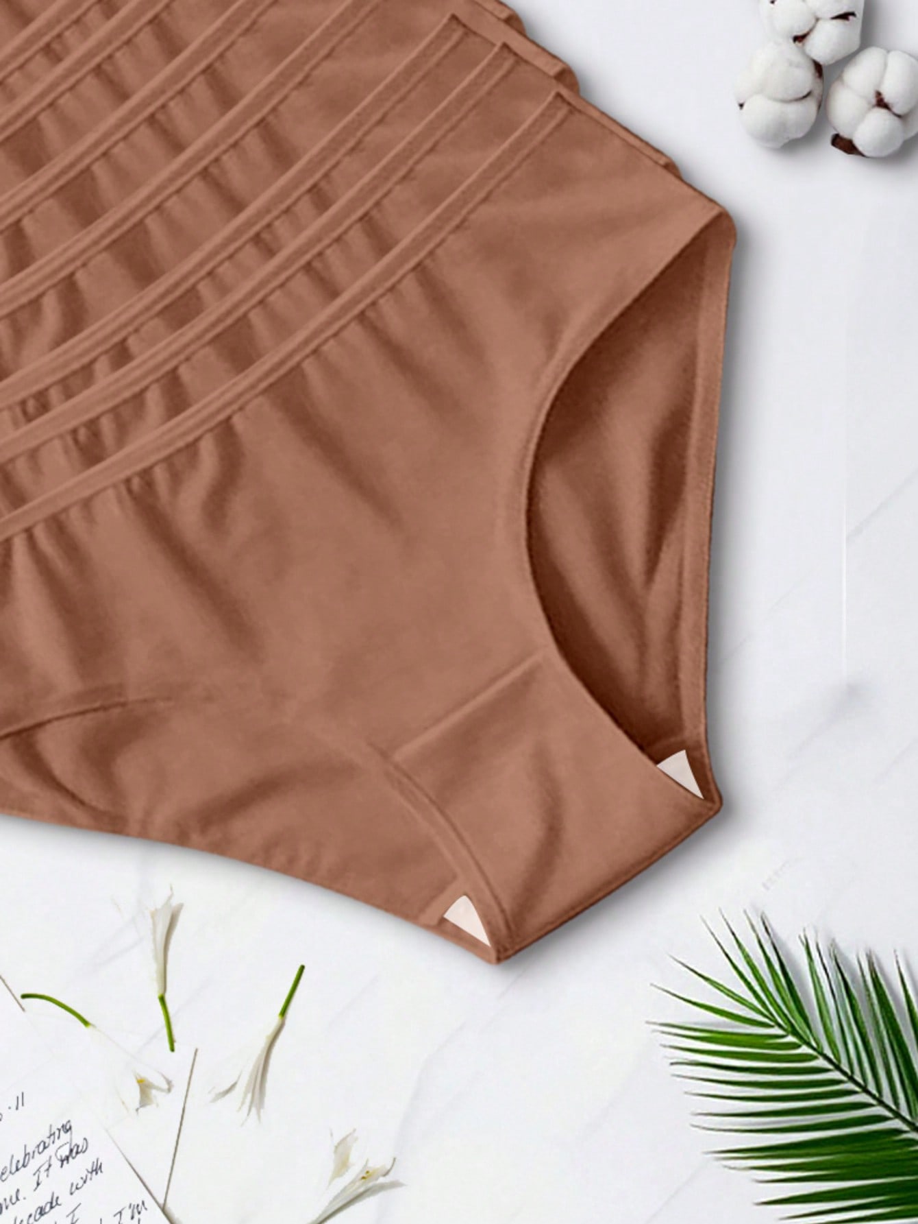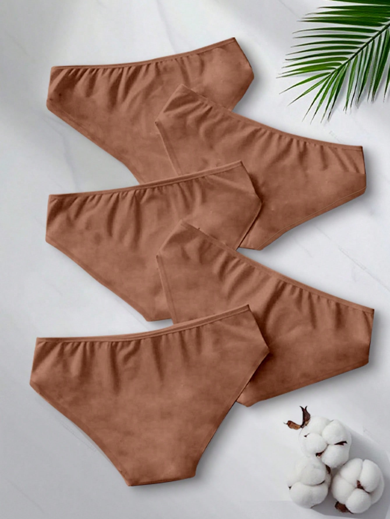 Features: No Show, Sleep Color: Apricot Panty Type: Briefs Rise: Low Rise Number of Pieces: 5-Piece Set Fabric Elasticity: High Stretch Material: Knitted Fabric Composition: 95% Cotton, 5% Elastane Care Instructions: Hand wash, do not dry clean