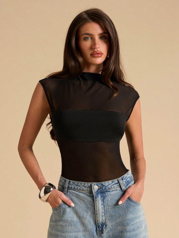 Details: Backless, Contrast Mesh, Sheer