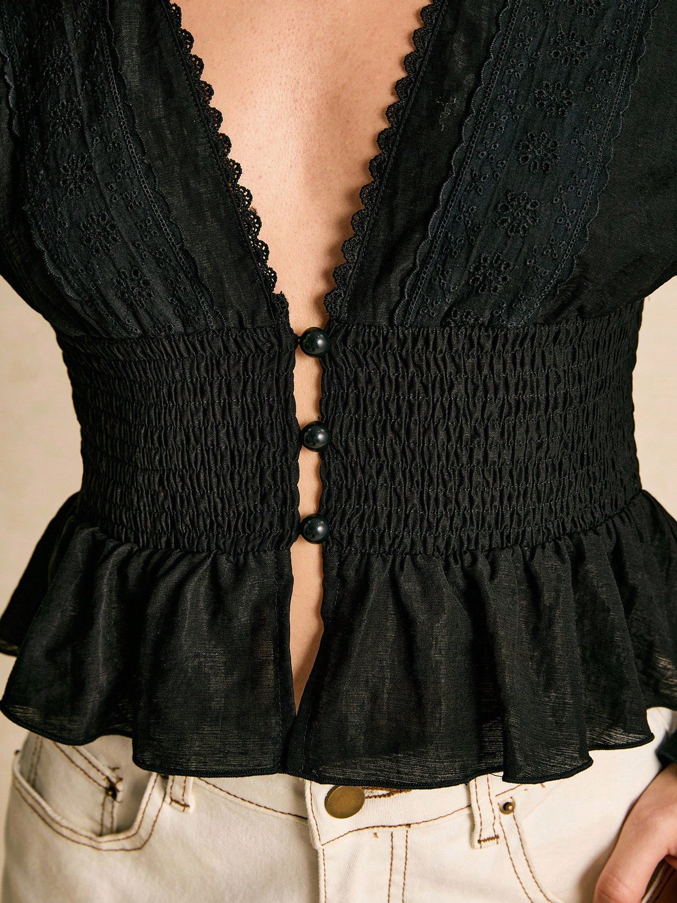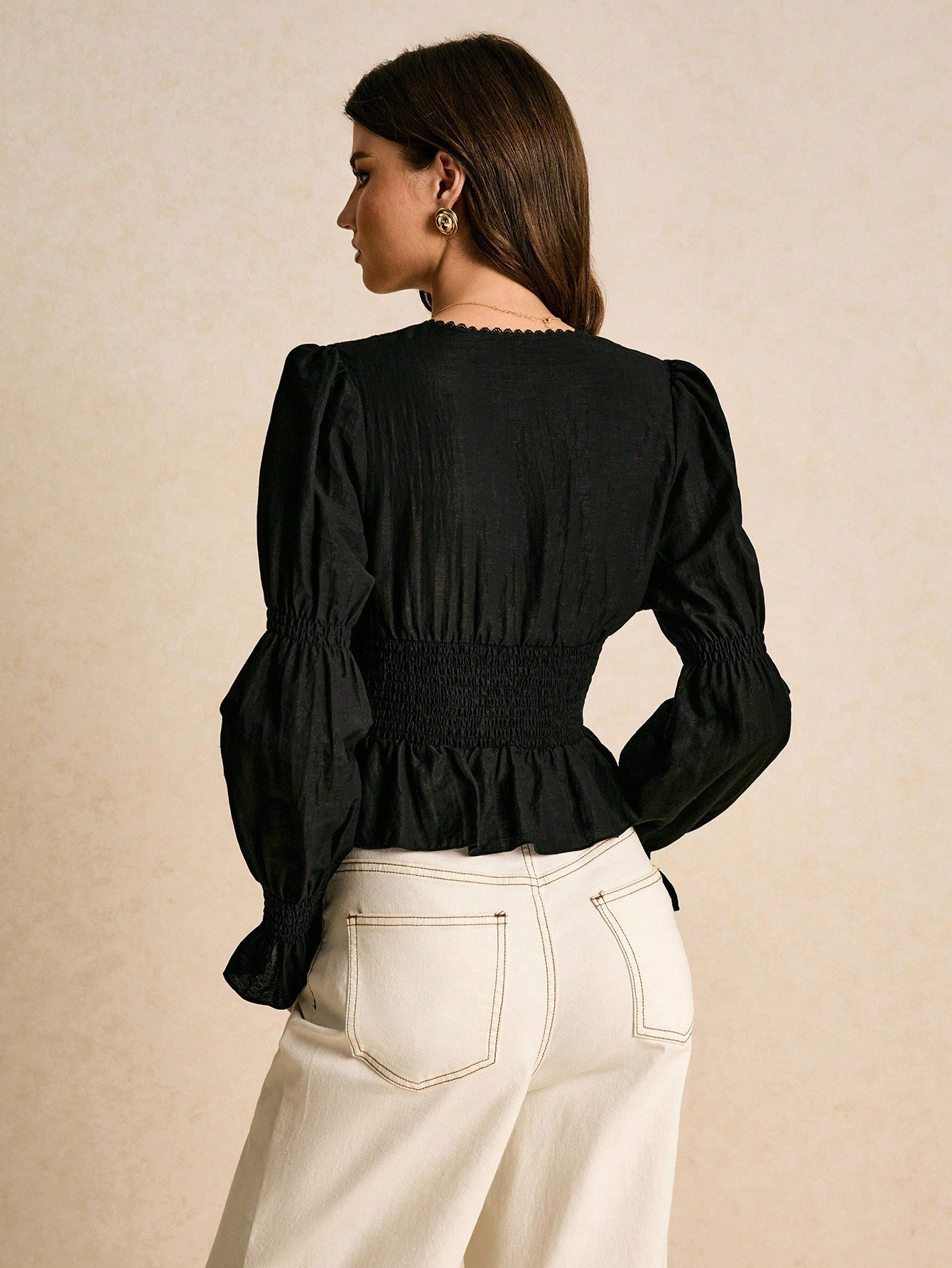 Shirred Waist Drawstring Blouse