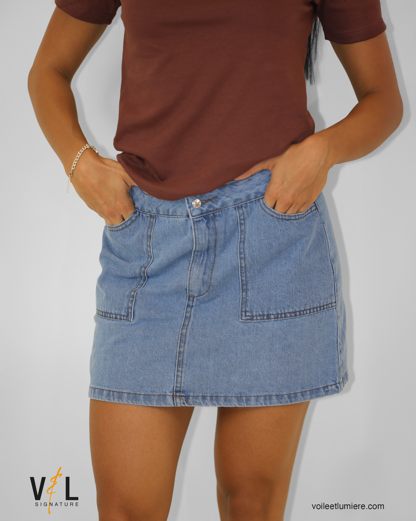 Short Front Pockets Denim Skirt quantity