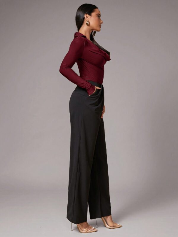 Color: Burgundy Sleeve Length: Long Sleeve Fit Type: Slim Fit Fabric Elasticity: High Stretch Material: Knitted Fabric Composition: 85% Polyester, 15% Elastane Care Instructions: Machine wash, do not dry clean Sheer: No