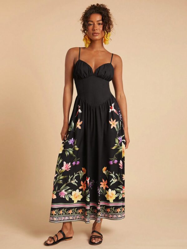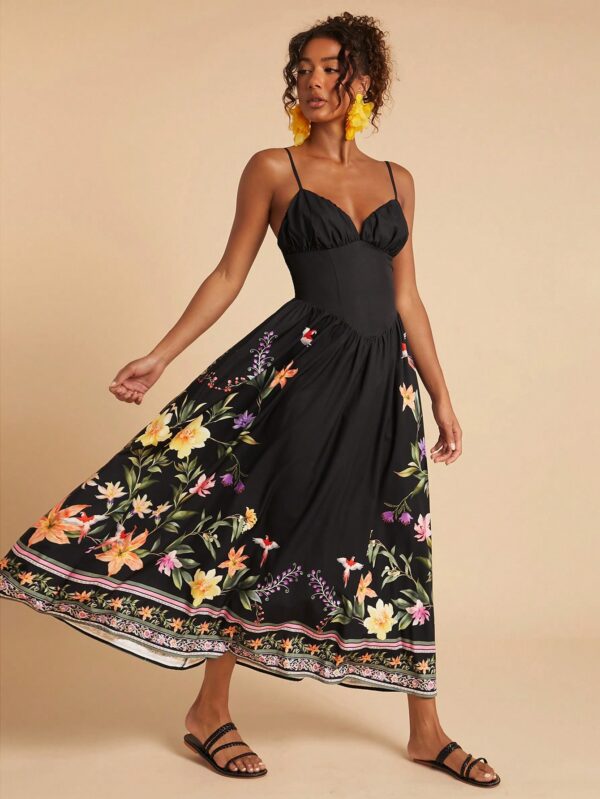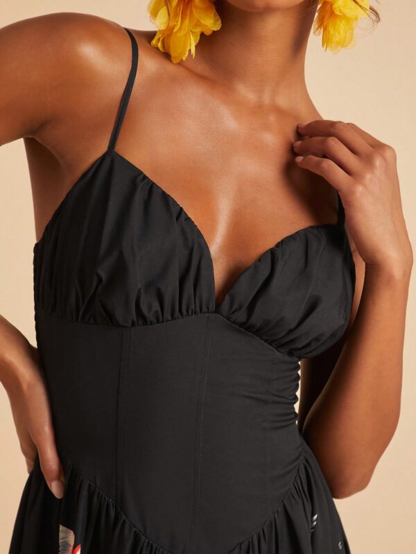 Woven Printed Dress With Spaghetti Straps