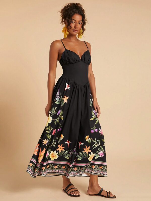 Woven Printed Dress With Spaghetti Straps | Voile et lumiere | Online Store