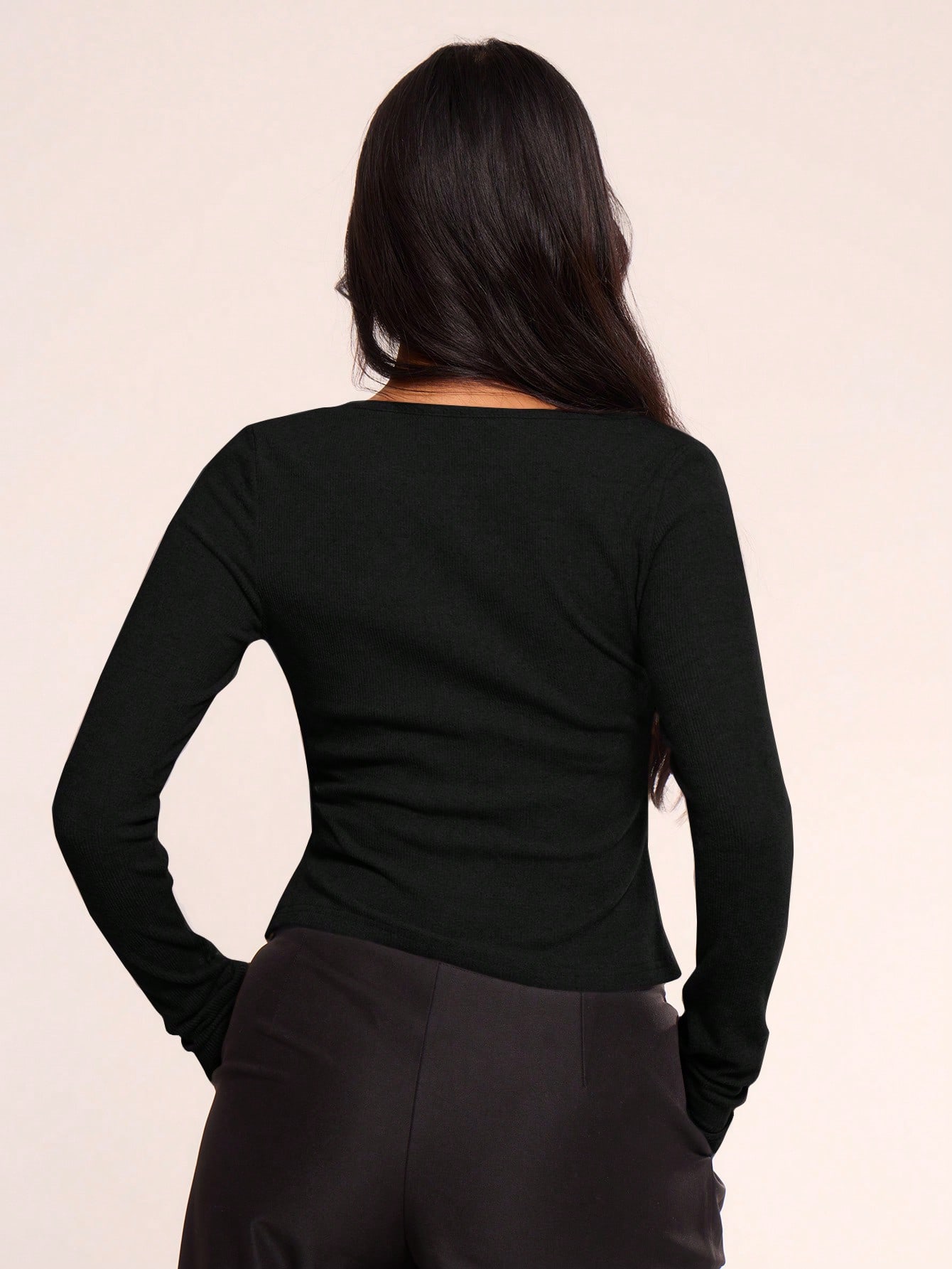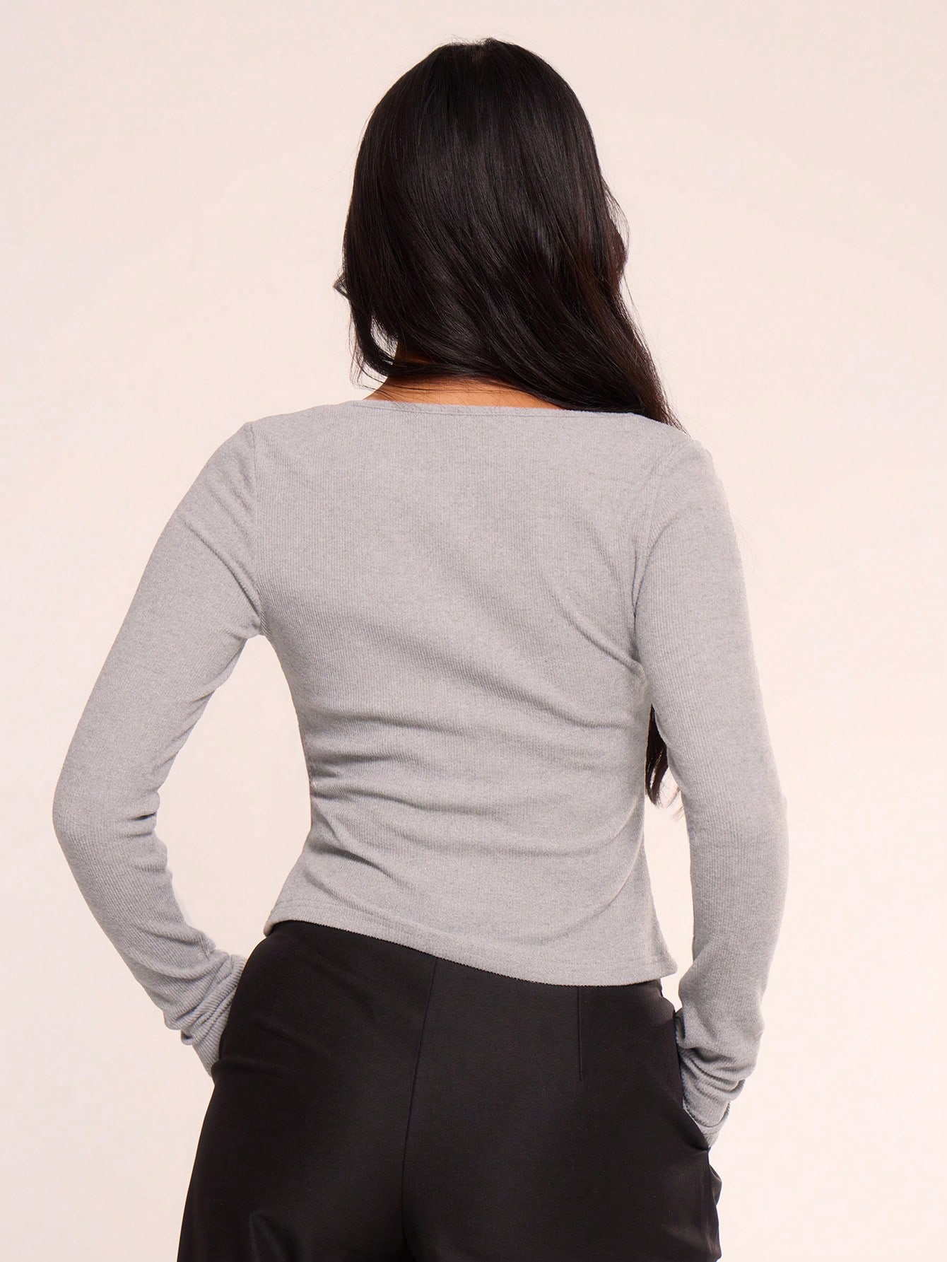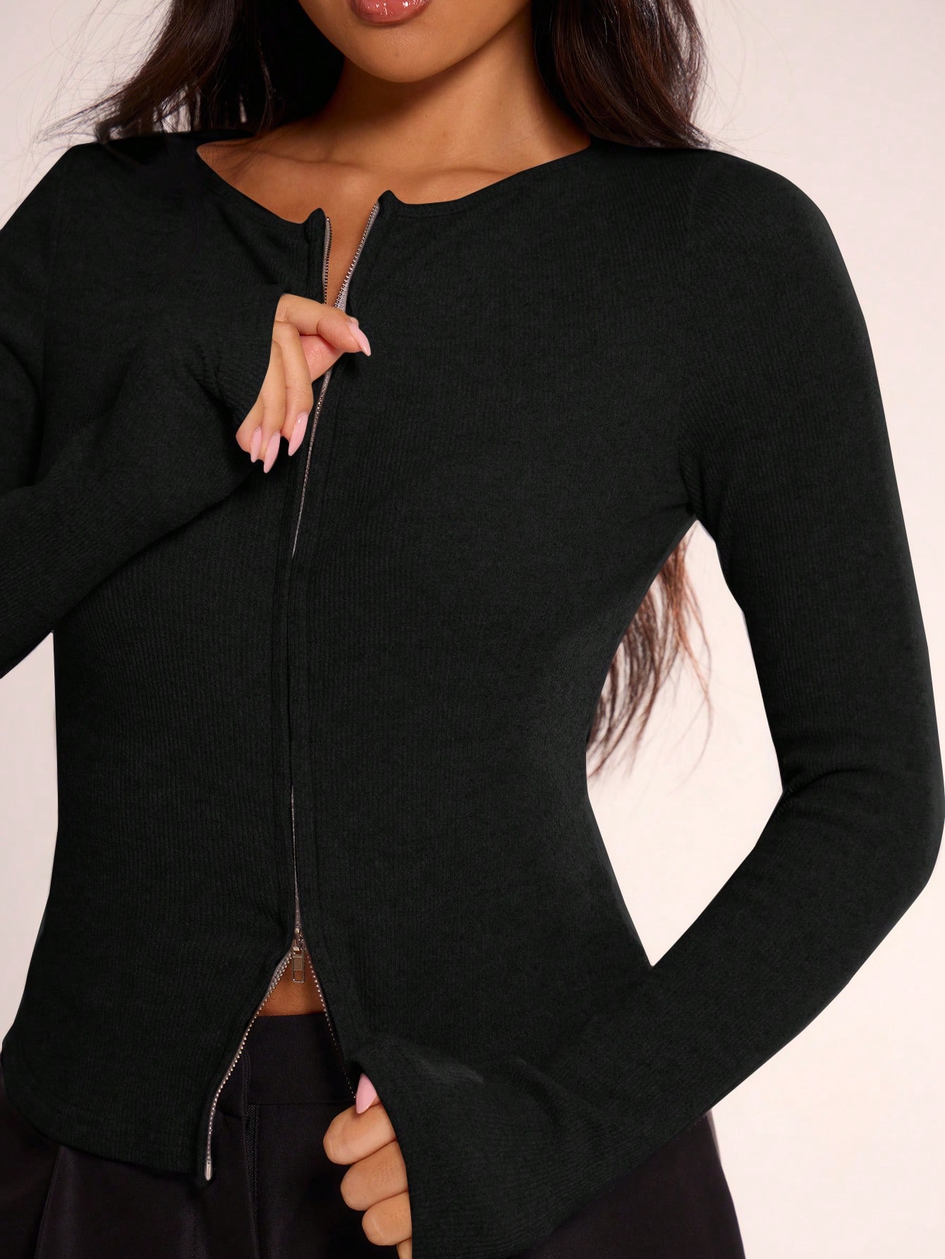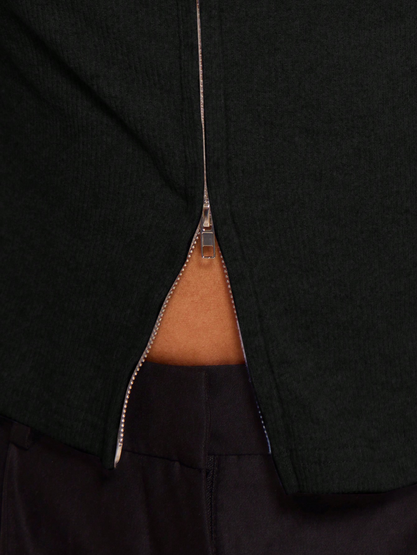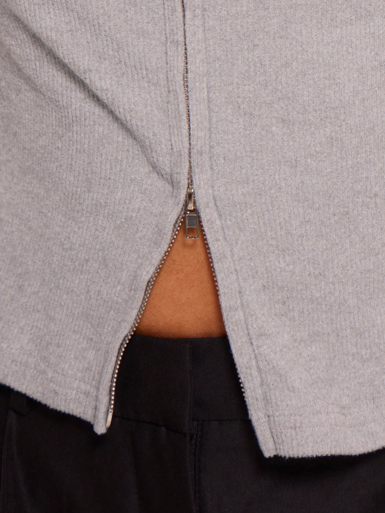Zip Through Crew Neck Long Sleeve Top | Voile et lumiere | Online Store